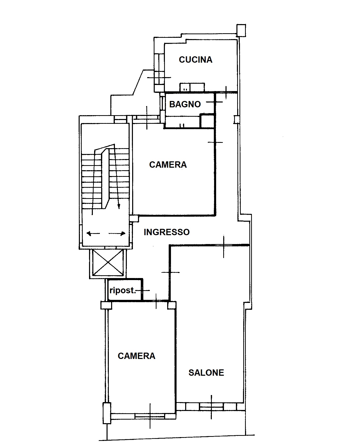 L’unità immobiliare è composto da ingresso, due camere, doppio salone, cucina abitabile, bagno, ripostiglio, inoltre l’appartamento è dotato di impianto di riscaldamento autonomo.